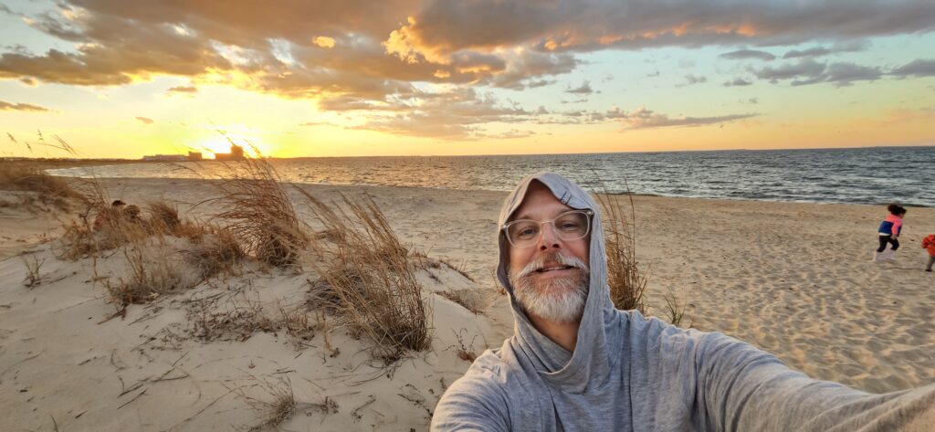 Next stop, Virginia Beach to the place where the Europeans first landed on the east coast. Our last camping site was at First Landing State Park. I wanted to touch the Pacific Ocean and then drive across and touch the Atlantic Ocean. I didn’t quite make it to the Atlantic Ocean, but Michael touched it for me.